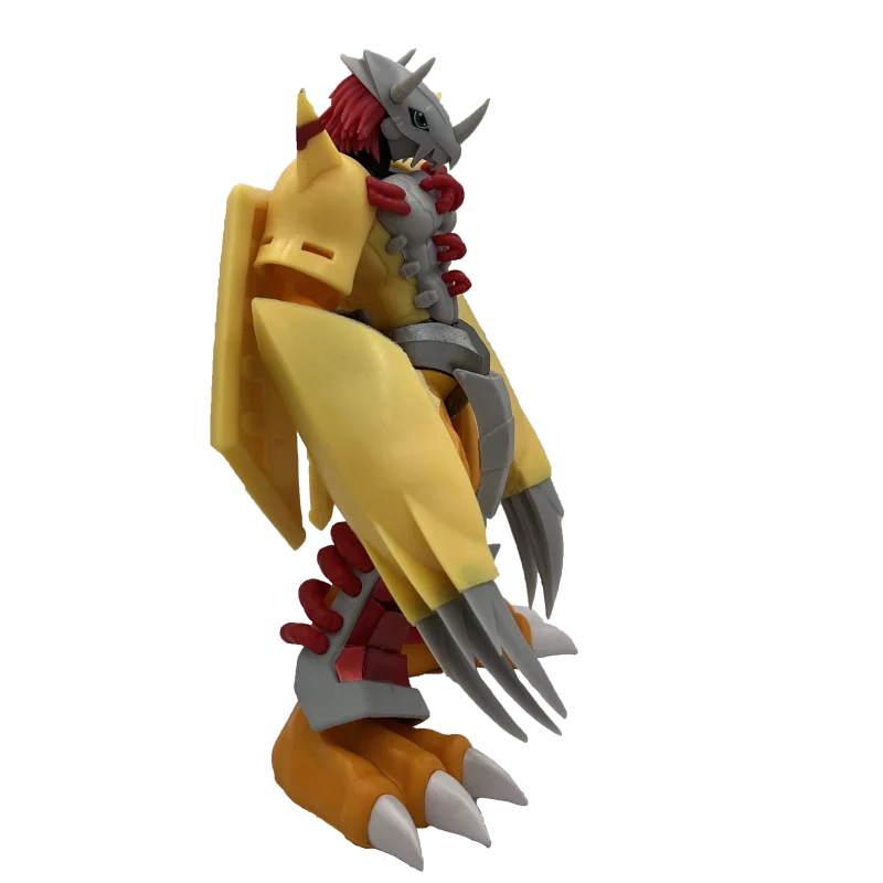 وار گریمون (WarGreymon) یکی از نمادینترین و قدرتمندترین دیجیمونها در سری اصلی Digimon Adventure است. به عنوان تکامل نهایی آگومون (Agumon) و یکی از دیجیمونهای منتخب، او تجسم قدرت، شجاعت و روحیه جنگندگی است. طراحی او ترکیبی از یک شوالیه اژدها با ویژگیهای مدرن است: زره پرتقالی-آبی، تیغههای دُرّاغی روی دستها (Dramon Killers مخصوص نابودی دیجیمونهای دراگونی)، و یک هاله قهرمانانه که او را از دیگران متمایز میکند.